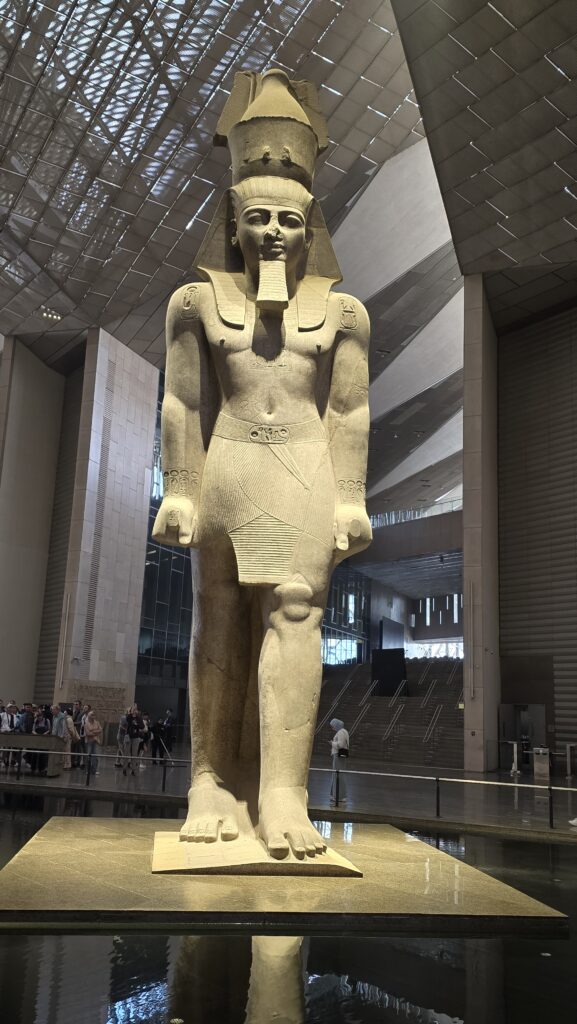 Beim Betreten der riesigen Eingangshalle steht man unmittelbar vor einer kolossalen Statue von Ramses II., die den Raum majestätisch beherrscht.