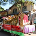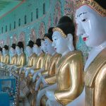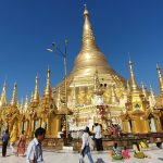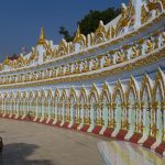 Unser nächster Punkt: die Besichtigung der Phaung Daw U Pagode. In der Halle stand ein Baldachin mit einem Altar für 5 Buddha Statuen aus dem 12. Jh. Die Form der Buddhas ist kaum noch zu erkennen. Unzählige Schichten Blattgold haben sie in unförmige Klumpen verwandelt.